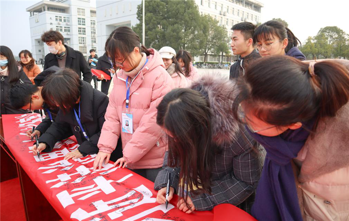 活动最后,全场师生在本次宣誓活动横幅上签名。(撰稿:学生记者 张忍龙 邓宇 摄影:学生记者 徐巴超 胡蝶 蔡醒 王嫚嫚 审核:从光梅 陈秀)