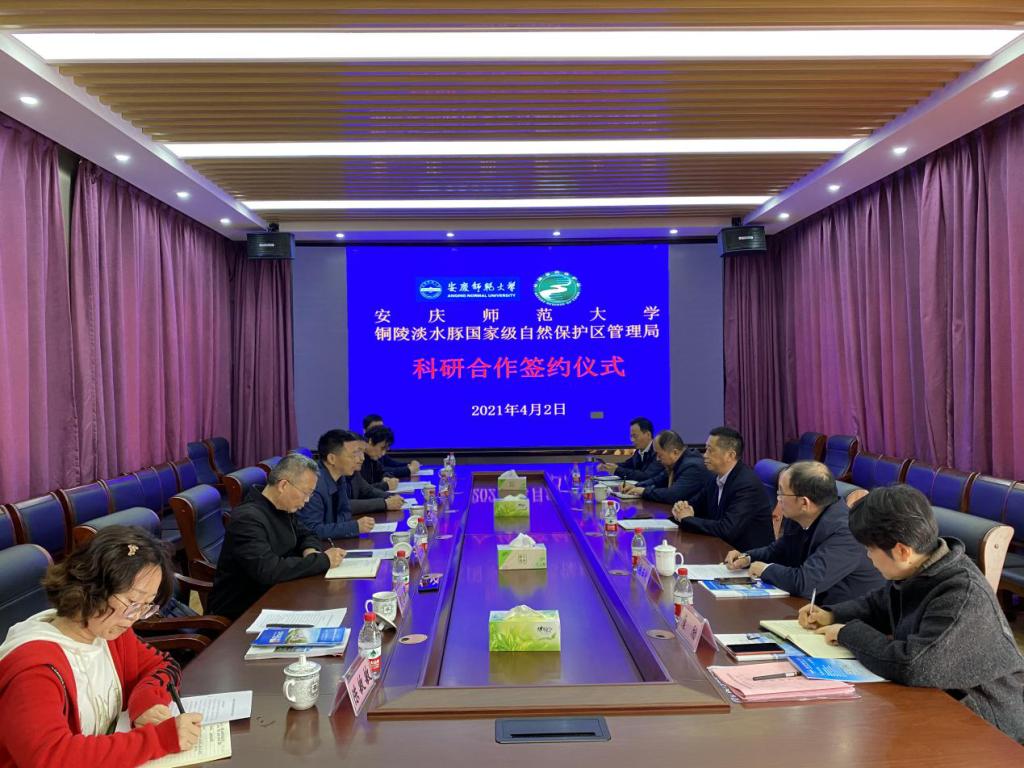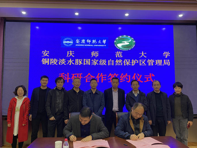 在铜陵淡水豚国家级自然保护区,汪时珍介绍了beat365官网近年来学科专业特色和科研人才培养情况。他指出,学校始终坚定“地方性、应用型、有特色、高水平”办学定位,积极服务地方经济发展。学校拥有省级重点实验室——水生生物保护与水生态修复安徽高等学校工程技术研究中心,聚集了一批水生态专业人才,研究方向内容与保护区宗旨高度契合,在科研基地共建、项目联合申报、重大科研攻关、本科生实习、研究生联合培养等方面合作空间广阔。座谈会后,生命科学学院与保护区管理局签订了科研合作协议。