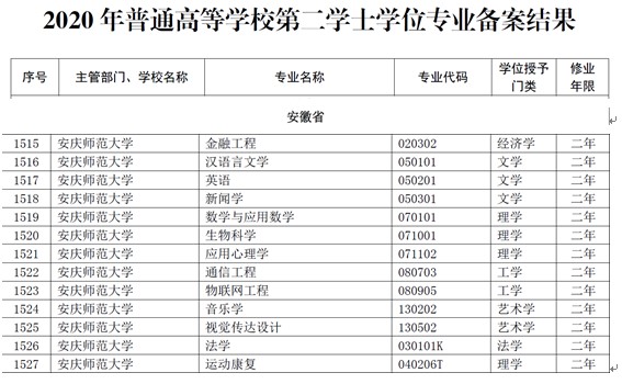 近日,教育部办公厅印发了《关于公布2020年度高等学校第二学士学位备案结果的通知》(教高厅〔2020〕13号),beat365官网申请的金融工程、汉语言文学、英语、新闻学、数学与应用数学、生物科学、应用心理学、通信工程、物联网工程、音乐学、视觉传达设计、法学、运动康复13个第二学士学位专业全部获批。