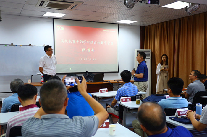 7月15日上午,著名教育学者、21 世纪教育研究院副院长熊丙奇博士为参训干部作了题为《高校教育中的学科建设和教育管理》报告。熊丙奇老师通过回顾985、211工程,结合“双一流”大学建设,阐述了我国高等教育管理体制改革的路径。7月15日晚上,复旦大学高教研究所所长熊庆年教授结合近年来中央、教育部等涉及高等教育的诸多文件介绍了国内外高等教育发展的基本态势;以知名高校管理的成功经验和失败教训,并结合自身管理经历,为参训干部讲授了高校管理干部的工作方法和管理艺术。7月16日上午,上海交通大学媒体与设计学院副院长、新媒体管理研究所所长姜进章教授作了《高校创新思维与创新管理》主题报告。姜进章教授阐述了创新的定义、分类,阐明了大学创新内容,指出了大学创新的必然性和促进创新的方式方法。7月17日上午,上海交通大学安泰经济与管理学院党委书记杨颉研究员作了题为《中国特色现代大学治理体系》报告。杨颉研究员从现代大学制度内涵、存在的问题及原因和美国高校的管理体制入手,旁征博引,通过列举大量实例,从领导体制、行政决策、学术管理和监督体系四个维度阐述对中国特色现代大学的理解。7月18日上午,复旦大学“双一流”建设办公室主任李粤江作了《高校发展规划和“双一流”建设》的主题报告。李粤江主任详细介绍了双一流建设的背景和要求,指出了目前面临的新使命、新挑战,分析了高等教育发展趋势,学科规划的基本要素,提出了要以规划为引领,加快发展。
