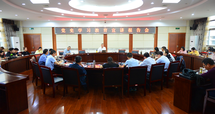 5月26日,校长闵永新在龙山校区行政楼二楼会议室作党史学习教育宣讲报告。发展规划处、审计处、教务处全体党员,外国语学院、教师教育学院党政领导班子和全体教师党员聆听了宣讲报告。
