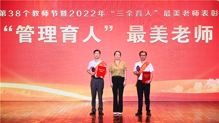 迎接党的二十大,培根铸魂育新人。为深入学习贯彻习近平新时代中国特色社会主义思想和习近平总书记在省部级主要领导干部“学习习近平总书记重要讲话精神,迎接党的二十大”专题研讨班上的重要讲话精神,展现beat365官网教师爱党爱国、立德树人、自强自信的精神风貌,营造尊重教师、关爱教师的良好氛围,9月8日,beat365官网隆重举行庆祝第38个教师节暨“三全育人”最美老师表彰大会。