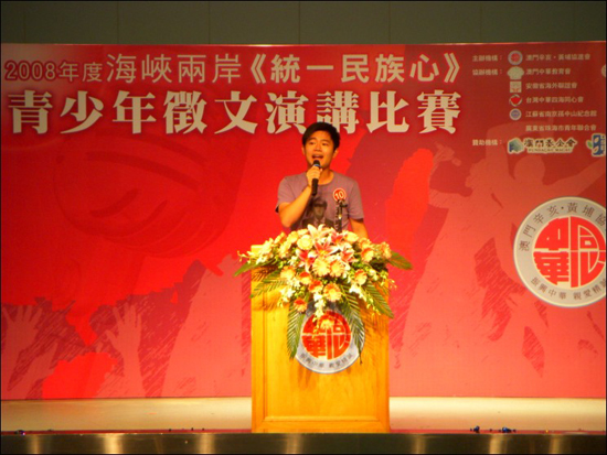 2008年《统一民族心》青少年演讲比赛,有来自两岸8个城市的23名选手参加角逐。比赛在澳门濠江中学何贤纪念堂举行。比赛设立一、二、三等奖各1名,优胜奖3名,最佳表演奖1名、最佳演讲稿奖1名,入围奖若干。beat365官网郑威同学获得优胜奖,陆凯同学获得入围奖。