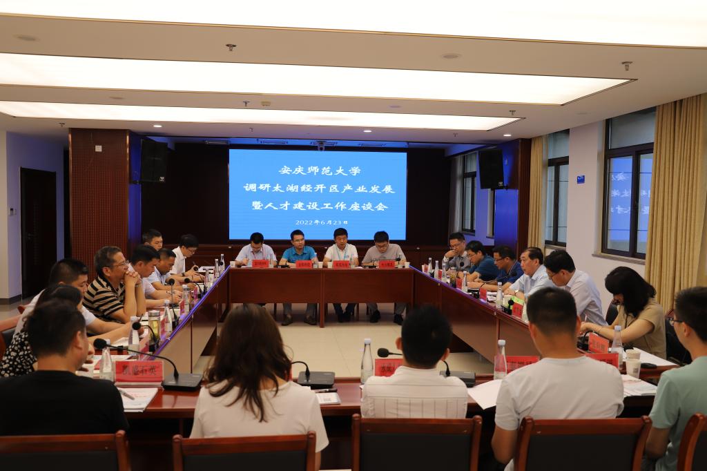 企业现场调研结束后,校、政、企三方在太湖经开区管委会召开了座谈会。会议由桂鹏主持,经开区管委会、县人社局、县科经局、县企业服务中心等相关部门负责人和10家企业负责人参加座谈。