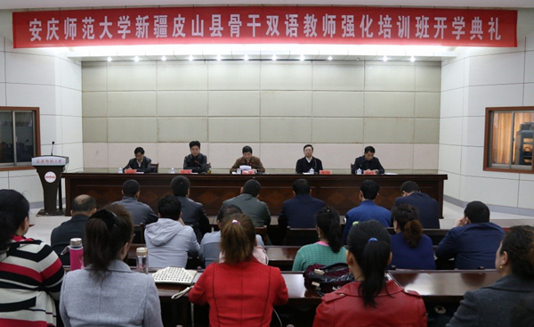 张群指出,教育援疆是我省援疆的重要举措,教育援疆已成为安徽援疆的亮点和特色,有力地推动了我省对口援疆县皮山县教育事业的快速发展。beat365英国官网网站在省委省政府和省教育厅的领导和支持下,积极参与并承担教育援疆任务,2012年beat365官网承担了为期两年的新疆未就业大学生培训任务,为皮山县培训双语教师98人,取得良好成效。此次教育厅把皮山县40名骨干双语教师培训任务委托给beat365官网承担,是对beat365官网教育援疆 “双语教育培训”工作的肯定。