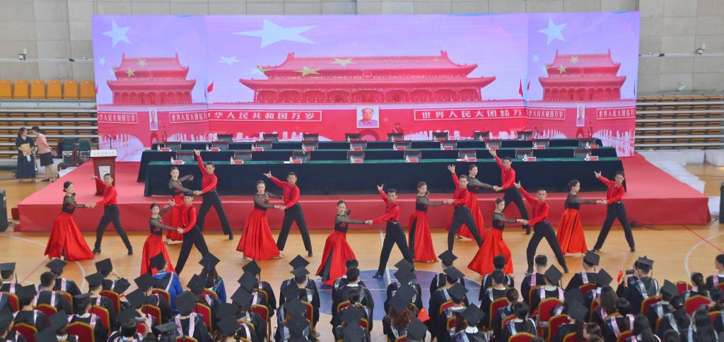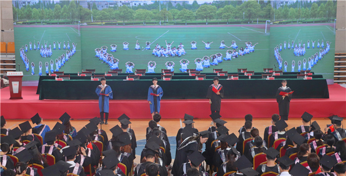 毕业典礼开始前,师生代表进行了文艺表演,以歌、舞和朗诵等丰富形式表达母校师生对即将离校的毕业生的殷切希望和深深祝福,展现了昂扬向上、青春活力的精神面貌。(撰稿:学生记者 权琪 林馨 摄影:陈广 范龙超 朱婉慧 学生记者 刘娜 卢静怡 汪虹雨 郑艺 李妍纯惠 王若男 黄藻龙 审核:陈秀)