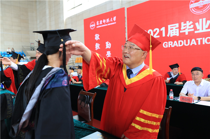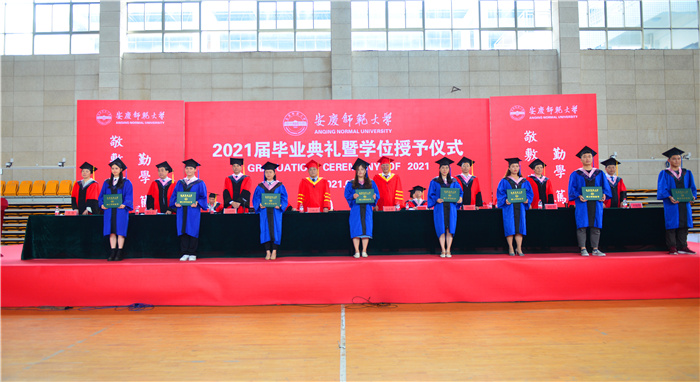 “五星红旗迎风飘扬,胜利歌声多么嘹亮……”在歌曲《歌唱祖国》的齐声演唱中,2021届学生毕业典礼圆满落幕。毕业生们纷纷喊出“毕业快乐”“我爱安庆师大”“感激相遇”等口号,向自己四年的大学生活进行道别,满怀信心启程远航。