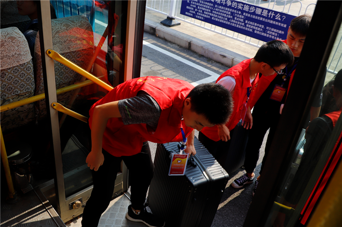 “虽然又热又累,但我觉得这件事十分有意义,明年有时间的话还会参加。”火车站迎新工作共分成五个小组,金融工程2017(2)班的刘德龙是第二组的组长,去年在校内参加过迎新工作的他是这组最有经验的人,他负责调度车辆和帮助新生把行李运上车,他觉得,相比于校内迎新,在火车站这样人流量巨大的地方,对自己的沟通和组织能力提出了更高的要求,从上午5点40分到下午6点,他共需要参与60余班次车辆的调度。