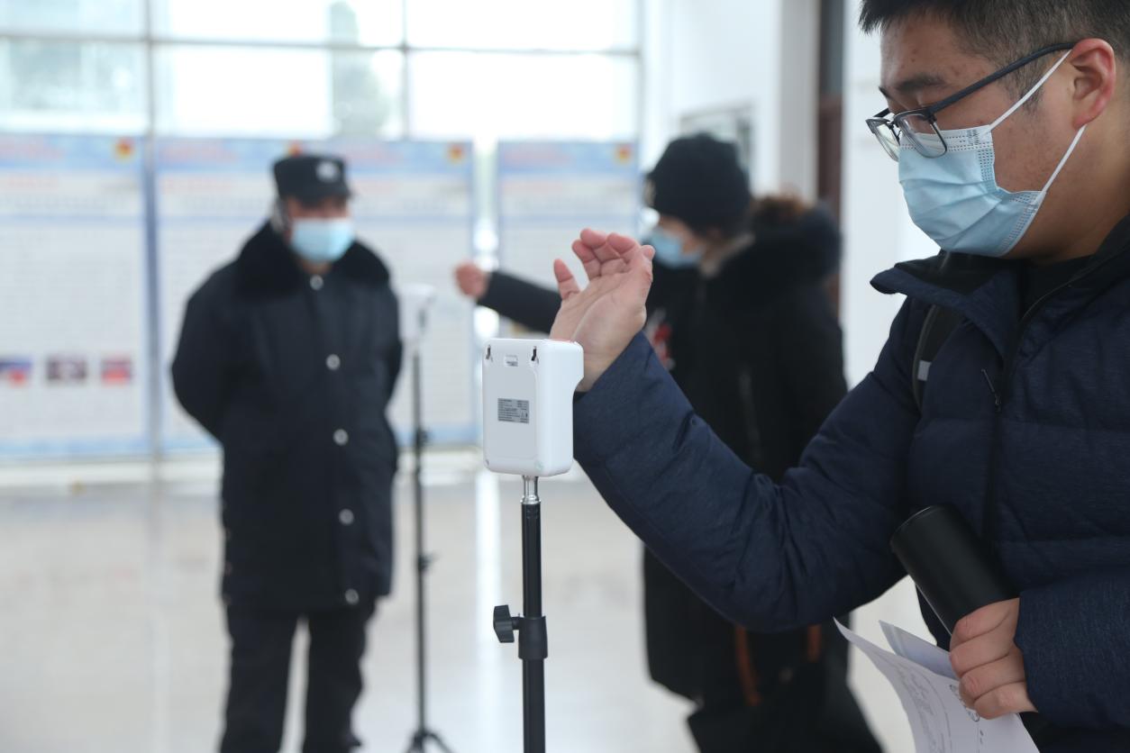 “所有考生戴好口罩,呈两路纵队,测温进场。”25号一大早,安庆的天空飘起了小雪,在龙山校区的教学楼前,参加考试的考生排起了长队,按照防疫要求,考生在工作人员的引导下,扫描“防疫行程卡”“健康码”,通过核验后接受体温检测,出示48小时内核酸检测阴性纸质版证明和全国硕士研究生招生考试考生诚信考试承诺书,并查验“身份证”“准考证”后,方可进入考场。