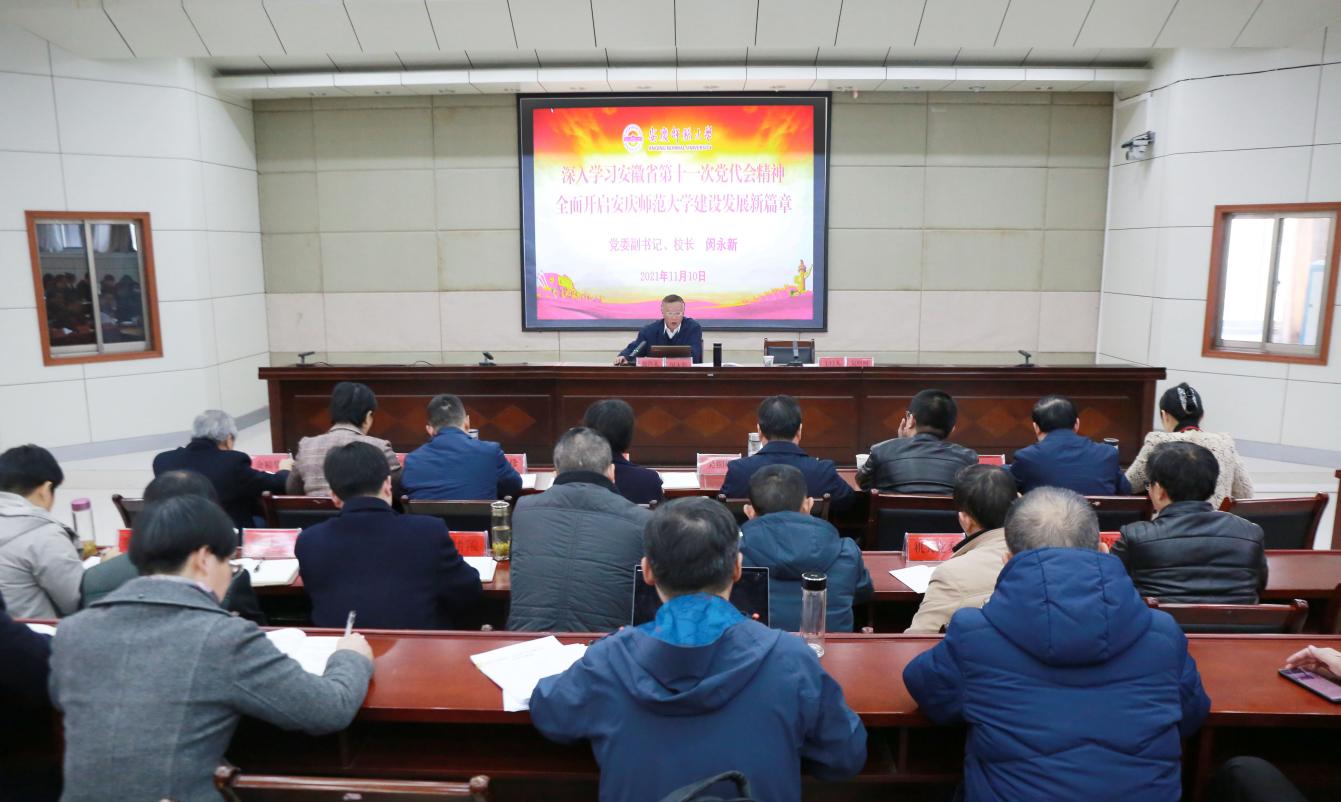 省第十一次党代会代表、党委副书记、校长闵永新作题为《深入学习安徽省第十一次党代会精神 全面开启beat365英国官网网站建设发展新篇章》宣讲报告。