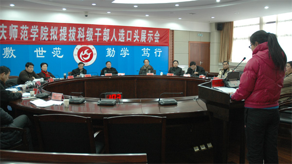 此前,组织部根据《安庆师范学院处科级干部选拔任用工作细则》,对有关院系、单位推荐的科级干部人选进行了资格审查,确定了50名拟提拔科级干部人选进行口头展示。