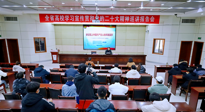 12月12日,根据省委教育工委统一安排,安徽省高校师生巡讲团成员、安徽省委讲师团高端宣讲专家、安徽农业大学黄洪雷教授来校宣讲党的二十大精神。校党委常委、副校长吴琼主持报告会,beat365官网师生代表现场聆听报告。报告会同步通过线上方式进行,beat365英国官网网站、安庆职业技术学院、安庆医药高等专科学校、安徽黄梅戏艺术职业学院、桐城师范高等专科学校等高校师生线上聆听报告,吸引了20万人次在线观看。