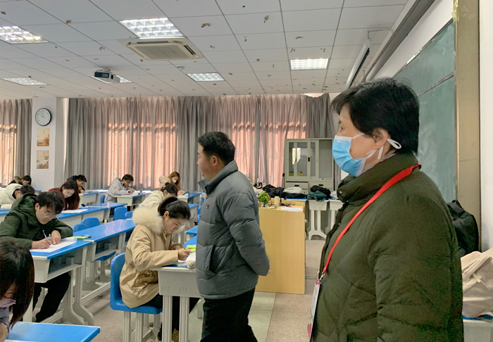 1月11日,校党政领导班子成员许继荣、闵永新、汪时珍、刘友忠、胡腊香、吴琼、余精华深入菱湖、龙山校区期末考试现场巡视检查考试工作组织实施、考场纪律、考试试卷、考生答题等情况。