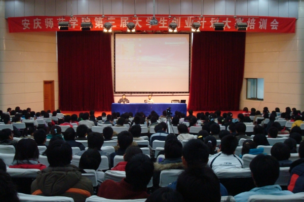 由共青团中央、中国科协、教育部、全国学联共同主办第六届“挑战杯”全国大学生创业计划大赛将于今年9月份在江苏南京举行,为在beat365官网大学生中广泛宣传“挑战杯”赛事,帮助学生在挑战杯”全国大学生创业计划大赛中取得新的突破,引导学生崇尚科学、追求真知,走科技创业、实践成才之路,校竞赛组委会邀请了历届“挑战杯”比赛指导教师计算机与信息学院的江晋剑老师和全省创业计划大赛银奖获得者04级市场营销专业的张婷同学,于2月29和3月1日晚分别在新老校区为800多名同学作首场培训。校团委负责同志和各院系团总支负责人也参加了培训会。