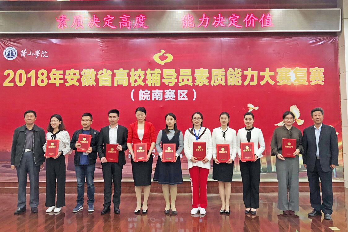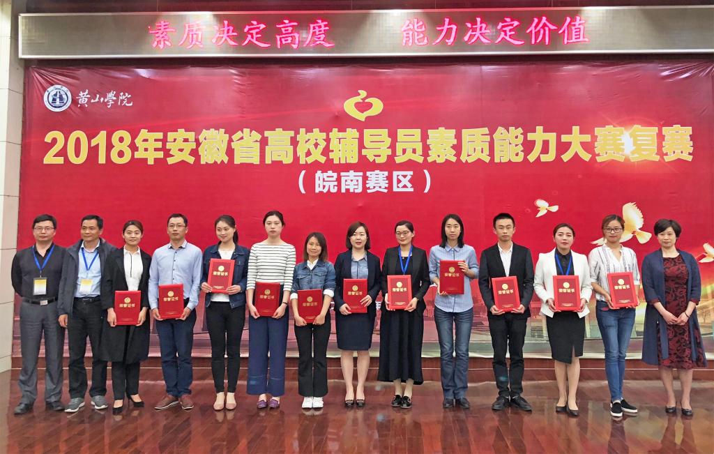 4月22至24日,2018年安徽省高校辅导员素质能力大赛(皖南赛区)复赛在黄山学院举行。本次大赛由安徽省委教育工委主办、黄山学院承办,beat365官网辅导员徐辉、方中政在比赛中表现突出,分别荣获二、三等奖。