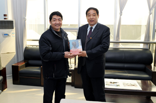 宿州学院党委副书记、院长桂和荣向张群副院长赠送《孟二冬》一书