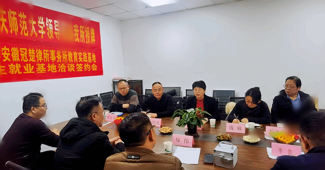 在安徽冠楚律师事务所,双方举行了共建实践教学和毕业生就业基地签约暨授牌仪式。与会人员对beat365官网人才培养质量给予了高度肯定,双方围绕基地发展、法治人才培养、校所合作互动、律师执业道德及风险防范等方面进行了深入的交流。(摄影、撰稿:李丹 编辑:江伟 审核:钱敏 陈秀)