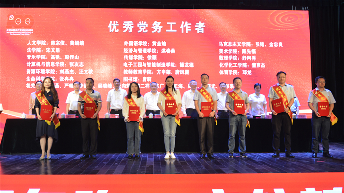 吴照明宣读了《关于表彰先进基层党组织、优秀共产党员、优秀党务工作者的决定》。计算机与信息学院教师第三党支部、校医院党支部荣获全省高校“先进基层党组织”荣誉称号,严仍昱荣获安徽省高校“优秀共产党员”荣誉称号,黄绍绪荣获全省高校“优秀党务工作者”荣誉称号。外国语学院党委等3个党委和人文学院学生第二党支部等14个党支部荣获学校“先进基层党组织”荣誉称号,张磊等51名同志荣获学校“优秀共产党员”荣誉称号,陈宗俊等32名同志荣获学校“优秀党务工作者”荣誉称号。