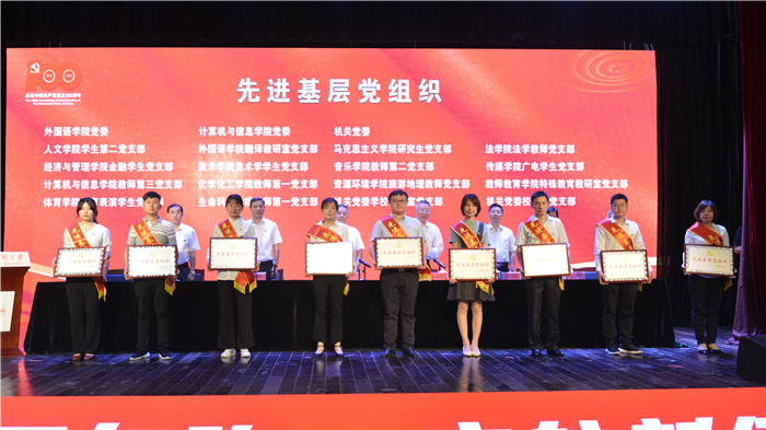 大会在雄壮的国歌声中拉开帷幕。校党政领导分别为受表彰的优秀共产党员、优秀党务工作者和先进基层党组织代表颁发证书、奖牌。