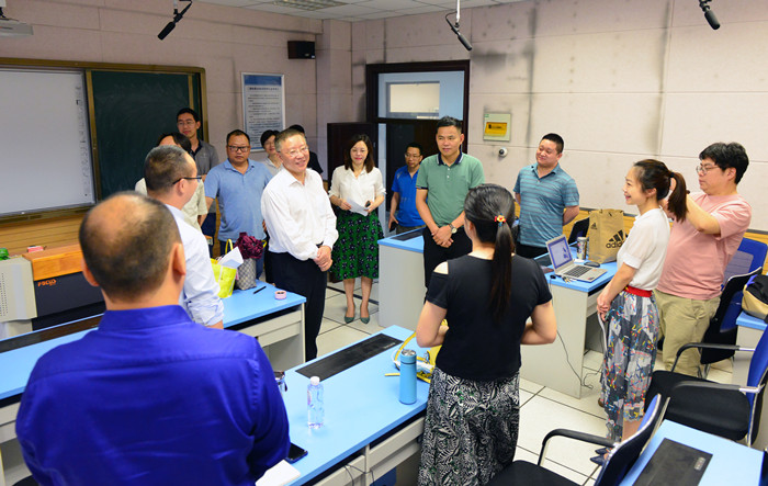 校长闵永新到比赛现场观摩指导,并与各组评委专家在线上进行交流。闵永新强调,要积极发挥智慧教学课堂大赛的示范引领效应,带动青年教师聚焦课堂教学,实现课堂革命,形成“以赛促改、以赛促教、以赛促学”的良好氛围;智慧教学本质上是现代信息技术和教育教学的深度融合,在高等教育新形势下,教师要积极转变教学理念,以学生为中心,改变传统的教学模式,提升智慧教学水平,不断促进学校教育教学改革。