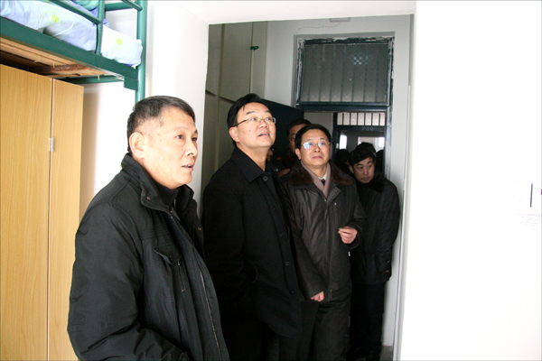 汇报会结束后,省援疆指挥部领导在校领导和有关部门负责同志陪同下,考察了培训教室、清真食堂和学员宿舍。