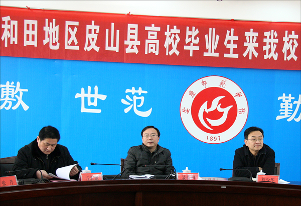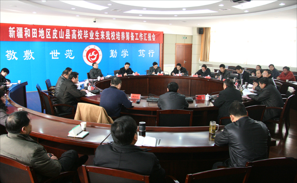 2月8日上午,中共合肥市委常委、安徽省援疆干部领队、安徽省援疆指挥部指挥长、新疆和田地委副书记聂爱国,安徽省人力资源和社会保障厅党组成员、副厅长刘少华等领导莅临beat365官网,检查指导beat365官网承办的“新疆和田地区皮山县未就业毕业生培养”工作的筹备情况。