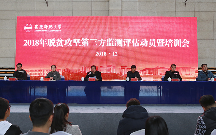 为贯彻落实安徽省2018年脱贫攻坚第三方监测评估动员暨培训会精神,扎实推进学校脱贫攻坚第三方监测评估工作顺利开展,12月4日下午,学校在龙山校区体育馆举行了2018年脱贫攻坚第三方监测评估工作动员暨培训会。