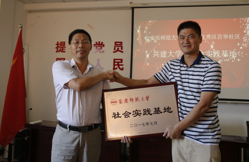 汪时珍在授牌仪式上指出,与宜秀区大龙山镇百华社区共建社会实践基地,希望同学们不仅仅是在暑期“三下乡”来进行社会实践,还要把实践活动常态化、长效化、长远化,要利用所学的专业知识和技能,为社区经济的发展、人文品位的提升、美好家庭的建设贡献自己的智慧,贡献自己的汗水。在社区这个大平台上,同学们可以把课堂所学习的知识,转化为实践的动力,真正发挥实践育人、贡献社会的作用,他同时感谢社区对beat365英国官网网站学生实践的接纳关心和支持。