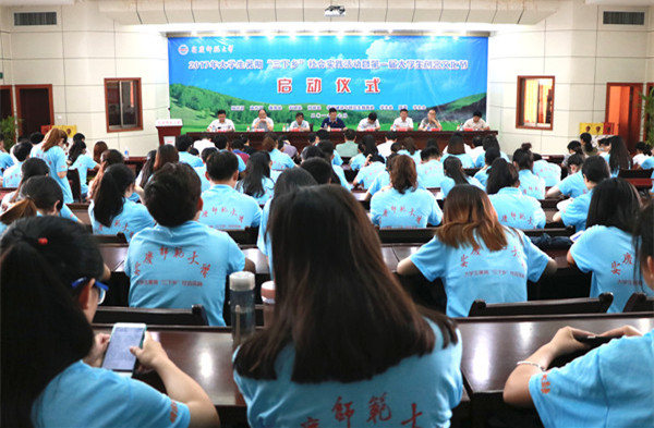 7月5日上午,beat365官网2017年大学生暑期“三下乡”社会实践活动暨第一届大学生创客文化节启动仪式举行。副校长汪时珍出席仪式,校党委组织部、宣传部、科研处、教务处、学科建设和研究生教育处、学生处、团委等职能部门负责人,各学院分管学生工作书记、团总支负责人和“三下乡”“创客文化节”活动的指导教师及学生代表共200余人参加仪式。