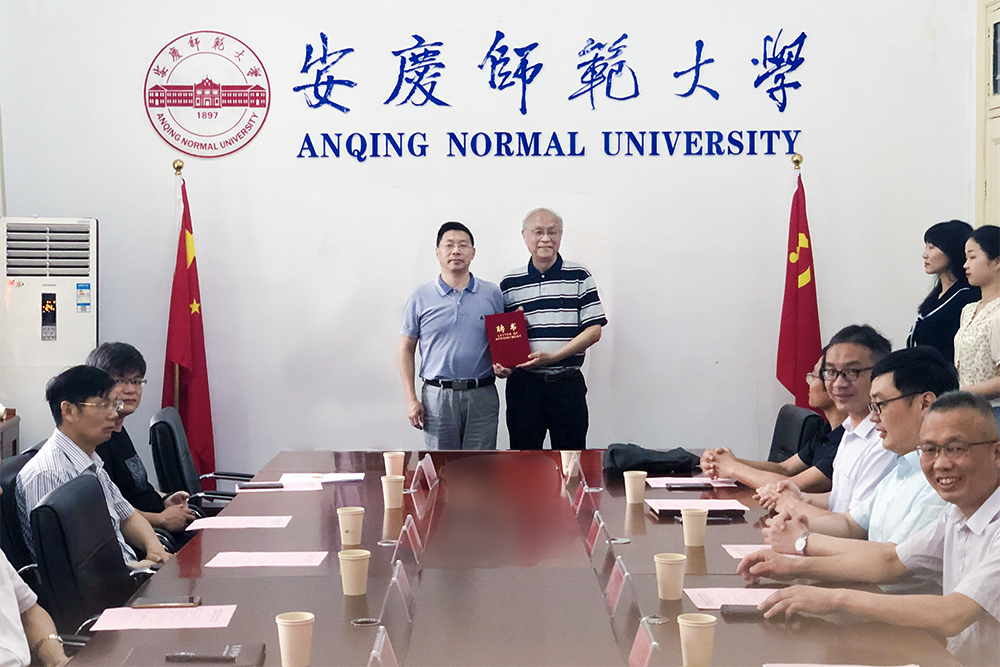 汪时珍为美学与文艺评论研究中心学术委员会顾问朱立元、中心主任江飞教授颁发了聘书,并一同揭牌。