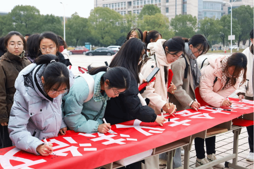 在场师生在宣誓活动横幅上签名。宪法日当天,学校还在食堂、敬敷广场等地设立宪法宣传点,开展发放宣传单、讲解宪法、签名留念等活动。此次“国家宪法日”宪法晨读宣誓活动,是“法治文化节”系列宣传教育活动中的一部分,旨在弘扬宪法精神,维护宪法权威、推动宪法全面实施,营造尊法学法守法用法的浓厚氛围。(撰稿:学生记者 刘子阳 摄影:学生记者 尹昌丹 编辑:江伟 审核:钱敏 陈秀)