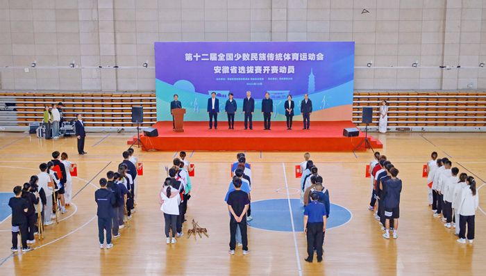 近日,第十二届全国少数民族传统体育运动会安徽省高脚竞速项目选拔赛在学校龙山校区篮球馆举行。省民族事务委员会副主任谢春、校党委副书记崔明等出席开赛动员会,省民委、省体育局、安庆市委统战部相关负责人,beat365官网党委统战部、体育学院负责人以及来自全省6个地市和高校代表队共100余名运动员、裁判员参加开赛动员会。