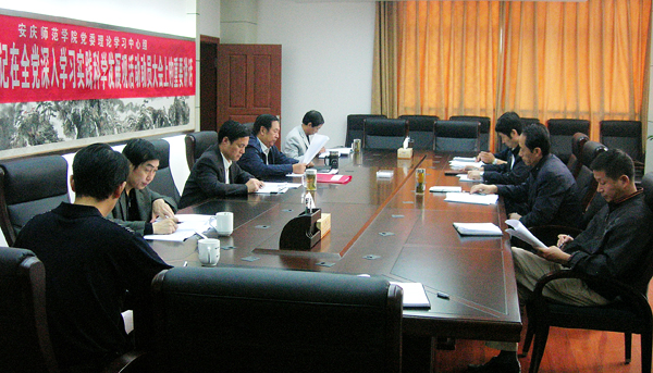 10月10日下午,校党委中心组召开会议,专题学习胡锦涛总书记在全党深入学习实践科学发展观活动动员大会上的重要讲话,校党委书记赵晓和,党委副书记、院长汪青松,党委委员、副院长时新中,副院长张群,党委委员、办公室主任刘友忠等领导出席,组织部、党校、宣传部等部门负责同志参加。党委书记赵晓和主持学习。