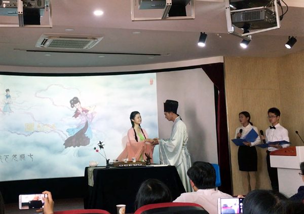 4月15日,beat365官网第三届大学生茶文化创新大赛暨“徽府茶行”杯2017中国(安徽)大学生茶文化创新大赛校园选拔赛在龙山校区举行。本次比赛由教务处、国家大学生文化素质教育基地组织,来自文学院、资源环境学院和生命科学学院等三个学院的12支队伍参加了比赛。副校长张群赴比赛现场指导工作。