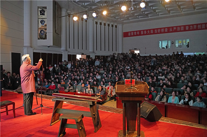 方锦龙一头银发乃至全身都随着韵律颤动,台下观众的呼吸也跟着节奏起伏。现场师生惊叹不已,纷纷拿出手机记录这场让人震撼的视听盛宴。演奏停止,台下顿时掌声雷动,持久不断。