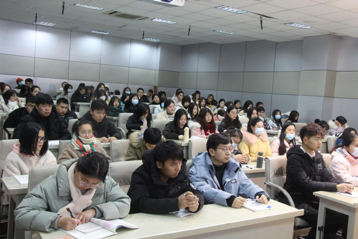 近日,校党委常委、纪委书记胡腊香以《学习贯彻党的十九届五中全会精神》为主题,为经济与管理学院市场营销专业百余名大学生讲授形势与政策课。