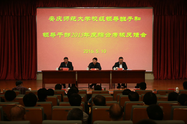 5月10日上午,省委第十八考核组副组长、省教育厅副厅长、省委教育工委委员解平和第十八考核组成员到beat365官网反馈2015学年学校领导班子年度综合考核情况。校领导许继荣、闵永新、殷红、张群、刘友忠,省政协常委何小祥等出席会议,党委委员陈光明、方锡球及学校机关各部门副处级以上干部,院系党政主要负责人,省级以上党代表、人大代表和政协委员,民主党派市级以上主委,校教代会执委,全体正高职称人员和学生代表参加会议。