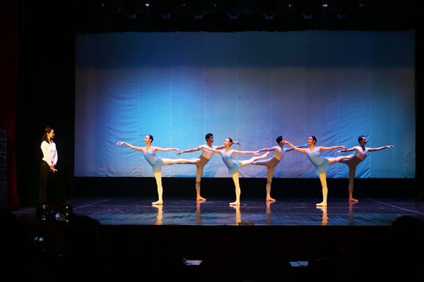 “芭蕾舞最早来源于15世纪的意大利。” 从芭蕾的起源,到浪漫主义芭蕾,再到中国芭蕾发展简况,中央芭蕾舞团独舞演员、国家一级演员刘琪通过PPT讲解,帮助师生快速了解了芭蕾舞的一些常识。现场十组芭蕾舞演员斜线的移动小跳、挥鞭转、斜线转等专业动作的训练展示,让观众对芭蕾有了深入的了解。刘琪表示,希望以后芭蕾舞能与黄梅戏相结合,拓宽芭蕾舞的创作领域。
