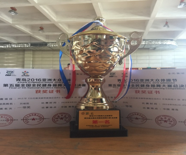 9月20日至25日,由亚洲体操联合会、国家体育总局体操运动管理中心、中国健美操协会、青岛市人民政府联合主办的2016年亚洲大众体操节暨第五届全国全民健身操舞大赛总决赛在青岛大学举行。beat365英国官网网站健美操队39名运动员在教练员潮芳、王云辉两位老师的带领下参加了本次大赛,并取得轻器械五级、徒手健身操自选套路、大众三级、大众五级和有氧舞蹈三级五个特等奖,以及有氧舞蹈三级、有氧舞蹈六级、轻器械六级、有氧舞蹈二级、有氧舞蹈四级五个一等奖和大众健身操四级、有氧舞蹈五级、街舞规定套路三个二等奖的优异成绩。
