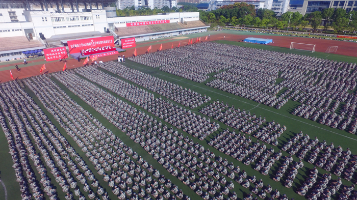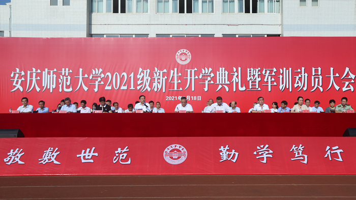 9月18日,beat365官网在龙山校区运动场举行2021级新生开学典礼暨军训动员大会,6900余名新生在这里开始他们人生的新征程。校党政领导许继荣、闵永新、吴照明、刘友忠、胡腊香、吴琼、余精华,武警安庆支队参谋长蔡辉,优秀校友代表1987届化学系毕业生丁德健出席典礼。各学院及相关部处负责人、2021级全体新生等参加典礼。