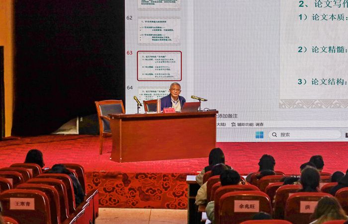陈文忠以《走向学者之路——人文学与现代文明秩序的建构》为题从“大学生需要读什么书”“如何成为一个读书人”两方面入手,论述了经典著作对于青年学子成长成才所起到的重要作用,详细介绍了人文学者的学术特征、文化使命以及成为人文学者的“五部曲”。他表示,问题是哲学的中心,论证是哲学的精髓,并引用典型案例重点强调了思辨、论证的重要意义。