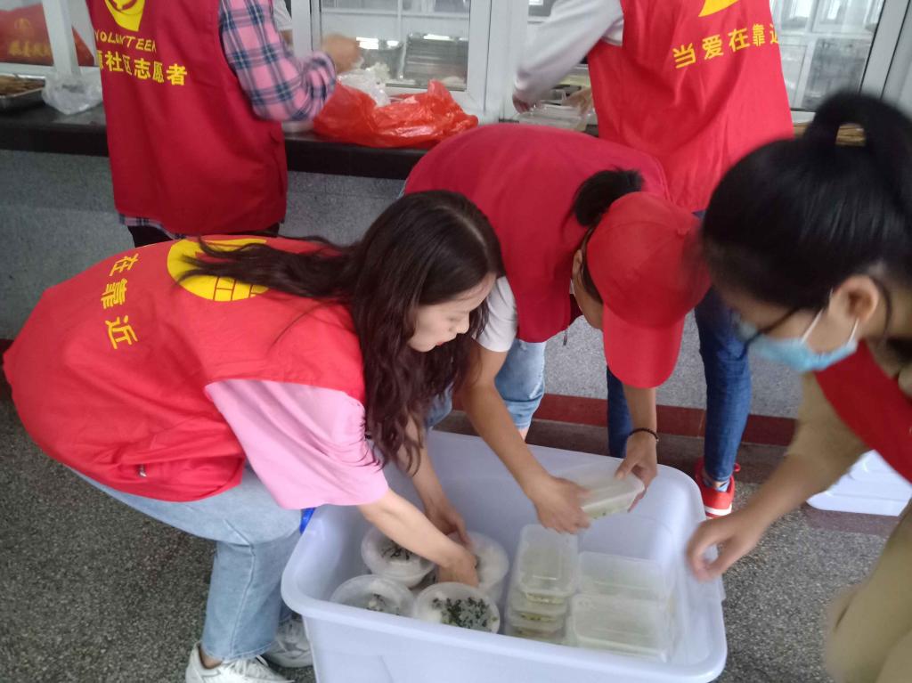 洗菜、打包、送餐,6个志愿者每天从早上6点半忙到下午5点半,为350余名受灾群众提供爱心餐。音乐学专业2018级1班的王慧娟就是其中一名志愿者。