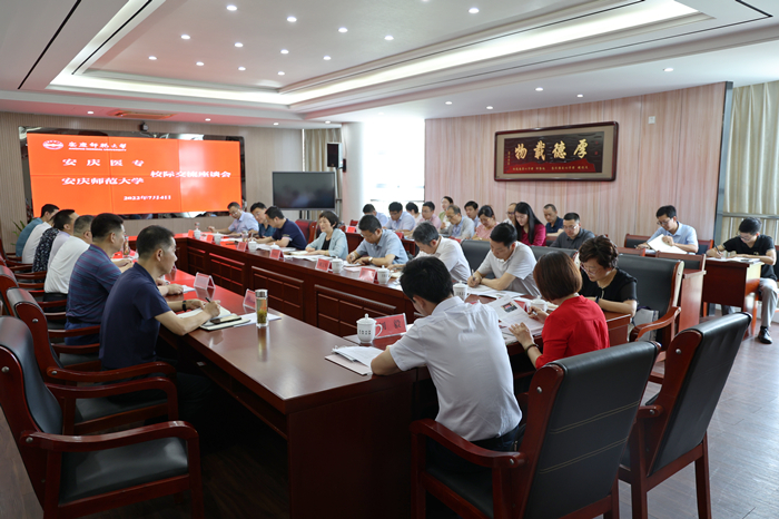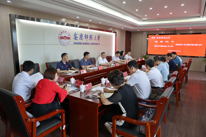 许继荣主持座谈会,并代表学校党委对安庆医专一行来校交流表示欢迎。他简要介绍了学校的办学历史和发展现状,重点介绍了学校在党建引领高质量发展等方面的主要做法及成效。他指出,安庆医专与安庆师大作为同处一地的两所高校,多年来保持紧密联系,共同为安徽高等教育事业和地方经济社会发展作出了积极贡献。他希望,双方能以此次交流为契机,在今后的发展进程中,进一步深化交流合作,不断拓展合作领域,互相借鉴学习,共同发展进步。