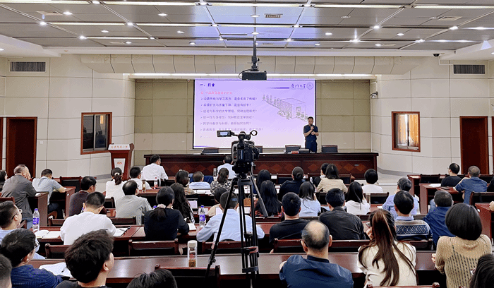 计国君从数字化教学转型的时代背景切入讲座主题,深入分析了大学变革的信号、数字化驱动下大学发展的趋势、数字大学建设、教与学的智慧化与数字化科研等问题,深刻阐明了新时代大学教育教学设计的科学内涵与有效维度。他指出,数字化转型已经成为当前教育改革的重心,通过课程重构设计与实践,实现现代信息技术与课堂教学的深度融合,发挥课程数字化资源的育人作用,是落实数字化转型教学创新的核心问题。计国君强调,教师要改变传统教学模式,注重培养学生的思维能力、情感能力、审美能力;教学要基于现代信息技术与学情,以学生“发展”“学业”“效果”为中心,进行教学内容、教学过程、学习评价的重构、创新和设计;要利用好数字化平台与智能技术功能,建构翻转课堂教学模式架构,构建服务学生个性化自主学习的在线课程。