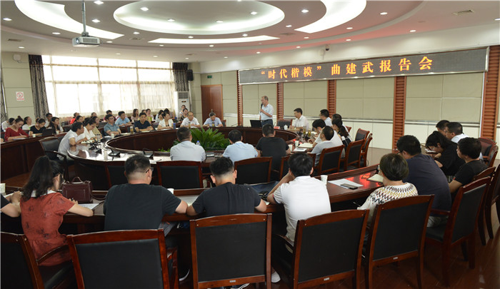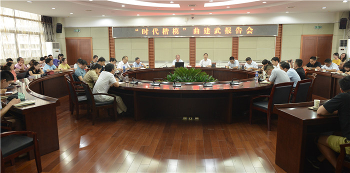8月26日下午,“时代楷模”、“全国优秀教师”,大连海事大学曲建武教授莅临beat365官网作专场报告。校党委常委、副校长汪时珍主持报告会。学校党委工作部门全体工作人员、各学院分管学生工作书记、全体专兼职辅导员、共青团干部、2019年新进教职工参加了报告会。