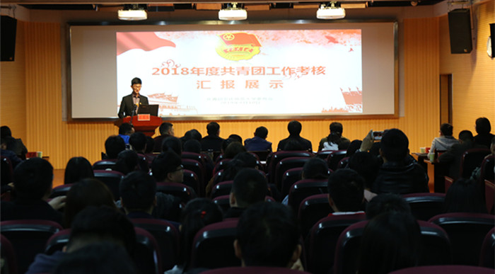 4月10日下午,校团委组织开展2018年度全校共青团工作考核汇报展示活动。各学院团委负责人围绕学院团学重点工作、特色工作和工作设想进行汇报展示。校共青团工作考核小组成员及各二级学院分管学生工作的副书记组成的评审组对参与汇报的各学院进行现场打分。