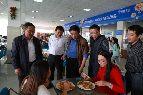 在校期间,杨德林副厅长一行专门到学生食堂检查指导工作,并与学生一道共进午餐。他认真检查了学生食堂伙食供应质量、伙食价格、食品卫生安全等情况,与就餐学生进行了亲切交谈。(院办)