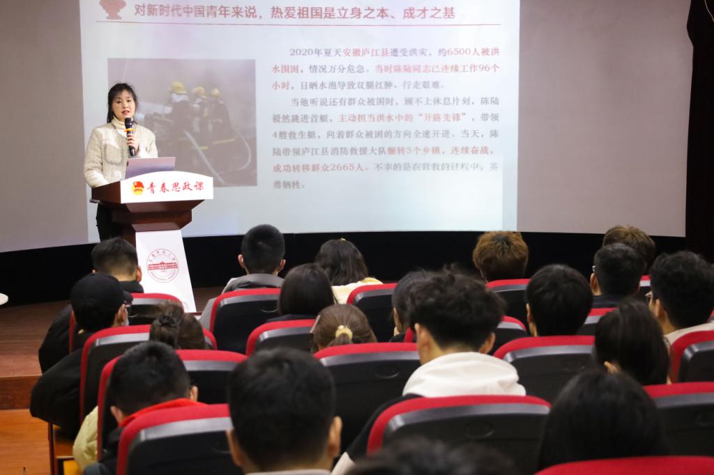 “今天的青春思政课,让我很有感触。党的二十大报告指出‘青年强,则国家强’,一代代青年们正是用爱国奉献、实干笃行的精神,才筑牢了强国之基。作为学生,我们更要在知行合一中主动担当,从身边的点滴做起,把青春干在实处,才能有底气地发出‘请党放心,强国有我’的誓言。”应用统计学2022级1班团支部书记张静怡表示。