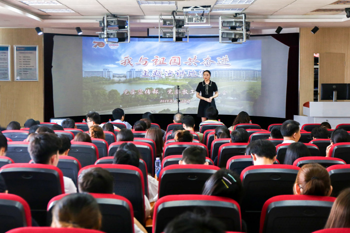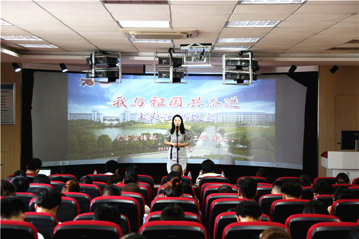 据悉,为隆重庆祝中华人民共和国成立70周年,党委宣传部、党委教师工作部、校工会联合举办了本次主题演讲比赛。本次比赛以 “我与祖国共奋进”为主题,以共和国建设的见证者、参与者、受益者为视角,畅谈新中国成立70年来国家、地区、学校、个人的今昔变化及取得的非凡业绩,或者抒发报国之志、爱国之情,以此激励不忘初心,牢记使命,拥抱新时代,砥砺新担当,实现新作为,为建设五大发展美好安徽作出新的更大贡献。(文/学生记者 徐杏玉 刘露 邱焱平 图/江伟)