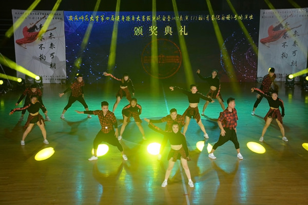 动感的音乐、炫彩的灯光和欢脱的舞蹈构成了一场精彩绝伦的晚会。6月27日晚,体育学院在校篮球馆举行第四届健身操舞大赛颁奖晚会暨2015级体育表演专业(1)班专场汇报演出。校党委常委、纪委书记胡腊香,校党委常委、组织部部长、体育学院党委书记戴卫义,校党委常委、教务处处长苏本跃及学生处、校团委等部门负责同志与学生们一同观看了表演。